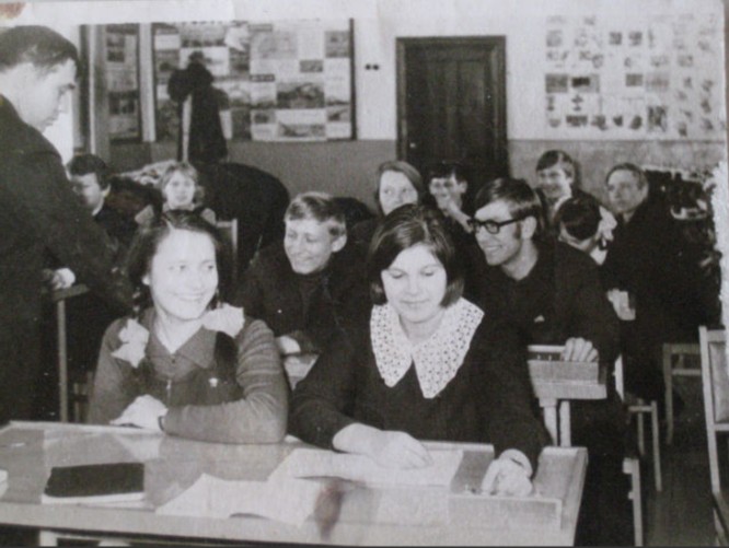 Выпускники 1972 на вечере встреч в Безменовской средней школе в 1979 году